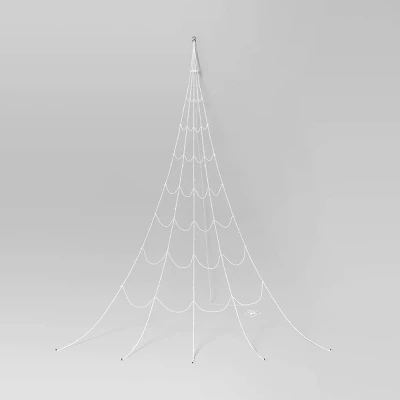 Give your haunted decor a creepy-cool glow with these 102-Count 16-Foot x 10-Foot LED Color-Changing Spiderweb Halloween Miniature String Lights from Hyde and EEK! Boutique™. Great as a flexible and frightening lighting option for your indoor or outdoor entertaining space, these decorative string lights feature a white-wired spiderweb design, adorned with 102 LED miniature bulbs to bring haunting, color-changing illumination in orange and purple to your holiday setup.