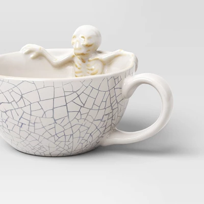 Enjoy your favorite drinks in creepy-cool style with the Stoneware Skeleton in Latte Mug with Crackle from Hyde and EEK! Boutique™. This latte mug showcases a crackled exterior with a skeleton sitting inside for fun and eerie vibes. Made of stoneware, this mug is great for serving both hot and cold beverages and is microwave and dishwasher safe for easy reheating and cleaning.