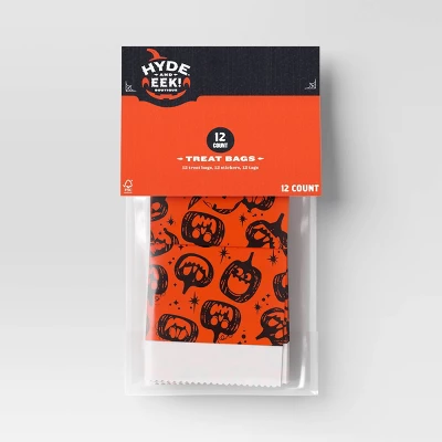 These 12-Count Pumpkin Treat Bag Party Favors from Hyde and EEK! Boutique™ are perfect for holding party goodies. This Halloween party favor pack includes 12 paper treat bags with different Halloween-themed prints in orange and black, 12 orange jack-o’-lantern stickers and 12 tags. Stuff them with candy or small Halloween props and hand them out while hosting fall gatherings for kids or greeting trick-or-treaters.