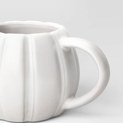 Enjoy your morning coffee and beverages with a subtle hint of Halloween in the Halloween Stoneware Figural Pumpkin Mug from Hyde and EEK! Boutique™. This stoneware mug holds 15.2 ounces and features a ribbed pumpkin design in white for a chic look that complements your kitchen and home decor. Suitable for hot and cold drinks, it’s dishwasher and microwave safe for your convenience.