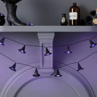Bring a delightfully creepy ambiance to the Halloween season with these 20-Count LED Fabric Witch Hat Six Spiders Halloween Indoor Outdoor Novelty String Lights from Hyde and EEK! Boutique™. These black polyester witch hats have spider detailing, purple bulbs and black wire for a soft, terrifying glow. They’re suitable for indoor and outdoor use and come with a convenient 6-hours on, 18-hours off timer to bring the scary vibes when you need them.