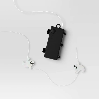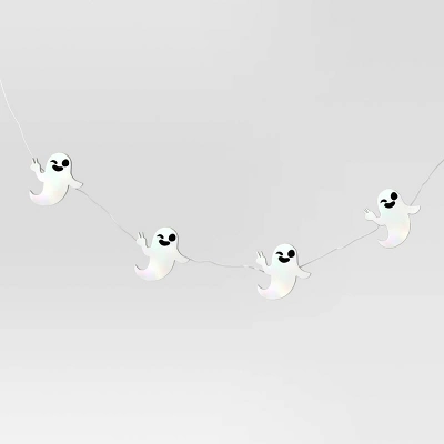 Illuminate your festive setup with the ghostly glow of these 20-Count LED 2D Iridescent Plastic Ghost With Peace Sign Halloween Dewdrop String Lights from Hyde and EEK! Boutique™. These decorative string lights showcase a silver-hued wire strung with white iridescent ghosts making peace signs and fitted with 20 white LED bulbs to glow up your space. Suitable for indoor and outdoor use, these battery-powered string lights are great for decorating your entryway, backyard, porch or patio for a touch of creepy-cool vibes.