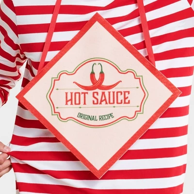 Spice up your costume with this Hot Sauce Costume Accessories Kit from Hyde and EEK! Boutique™. This two-piece wearable accessory set includes a typographic overlay tag in red, green and off-white with the text “Hot Sauce, Original Recipe” and two red chili peppers, paired with a red-and-green hat with the white-lettered label “Red Pepper” to turn up the heat at your Halloween bash.