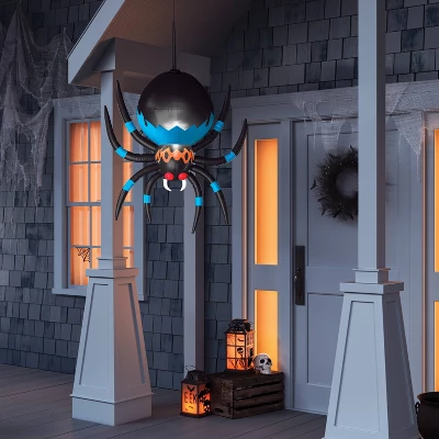 This 3.5-Foot Hanging Spider Inflatable Halloween Decoration from Hyde and EEK! Boutique™ adds a creepy-crawly touch to your Halloween setup. This black fabric spider with colorful accents inflates with an electric plug power source. Great for indoor and outdoor use, you can hang it with the attached loop or place it in your yard with the included two stakes and two tie-downs.
