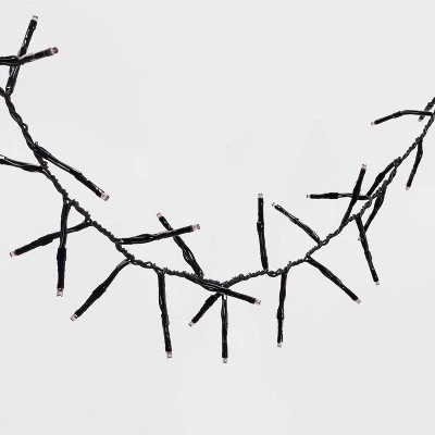 These versatile 60-Count LED Dewdrop Halloween Purple Garland Lights from Hyde and EEK! Boutique™ add instant magic to any indoor space. The delicate purple LED lights in a garland style with black wire look great draped on a mantel, framing a window or hanging above a bed. The attached battery pack requires three AA batteries (not included) and can be concealed within your decorations to let the lights truly stand out.