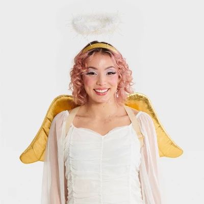 Channel your inner angel with the Adult Angel Halloween Costume Wings from Hyde and EEK! Boutique™. This two-piece accessory set includes a headband and wings, both crafted with a gleaming gold finish to add a divine touch of shine. Instantly adding a dash of angelic magic to your Halloween festivities, this accessory set is perfect for hosting gatherings, joining costume contests, trick-or-treating with your kids, enjoying themed parties and more.
