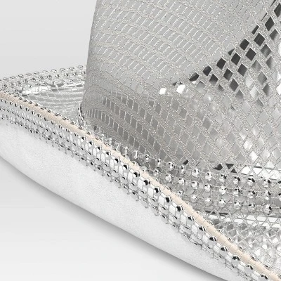 Top off your festive outfit with the glam bling of this Disco Cowboy Hat Costume Headwear from Hyde and EEK! Boutique™. Made from polyester, this costume headgear is designed as a disco cowboy hat in shiny silver for a celebratory sparkle. Pair it with any outfit for quick and easy party-ready look, or go all out with a full cowboy costume for trick-or-treating with the kids.
