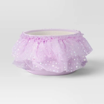 This Halloween Light-Up Princess Round Polyester Trick-or-Treat Pail from Hyde and EEK! Boutique™ will get your kid ready for magical trick-or-treat fun. Designed in a lavender hue, this fabric trick-or-treat pail features a shimmery tulle skirt with colorful dots around the rim. A top handle makes it easier to carry their candy, and the pail also lights up for extra fun.