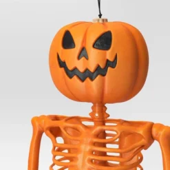 36″ Poseable Pumpkin Head Skeleton Halloween Decorative Prop Orange – Hyde And EEK! Boutique™