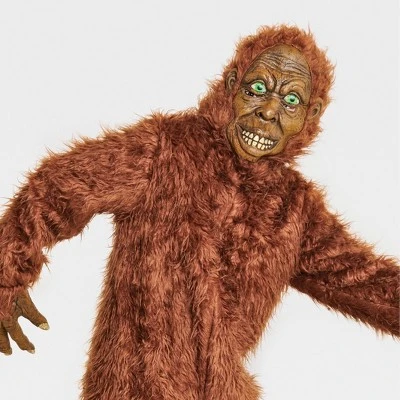 Transform your child into the legendary cryptid with this OSFM Bigfoot Costume from Hyde and EEK! Boutique™. Made from polyester and PVC, this costumes comes complete with a hooded, furry jumpsuit in brown with attached clawed hands, a green-eyed face mask with ape-like features, and brown shoe covers with monster toes. It’s perfect for trick-or-treating, Halloween costume parties, and beyond.