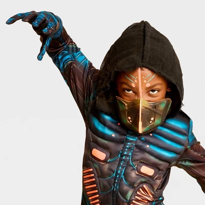 Your kid will look cool as ever on Halloween in the Desert Warrior Costume Glows Under Blacklight from Hyde and EEK! Boutique™. This kid’s costume includes a mask, a jumpsuit and gloves for a complete desert warrior look. Made of soft fabric, the pieces are comfortable to wear and perfect for all the Halloween festivities. Glows under blacklight.