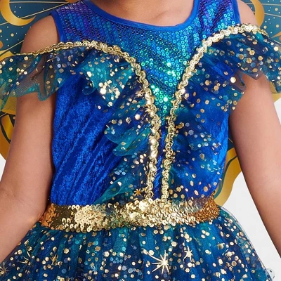 Your kid will love transforming into a magical fairy for Halloween with the Light-Up Moonlight Fairy Halloween Costume Dress from Hyde and EEK! Boutique™. This moonlight fairy dress includes a belt and a blue dress adorned with sequins and gold-tone detailing plus back butterfly wings for a stunning look. Made with lightweight fabric, this light-up costume dress requires two AA alkaline batteries (included) to add some extra shine.
