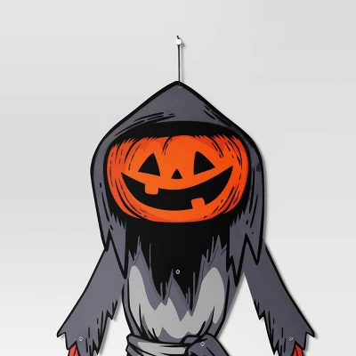 Dress up your home for fun and creepy Halloween festivities with this Large Lewis Paper Wall Decor from Hyde and EEK! Boutique™. This large wall decor features a pumpkin dressed in a hooded robe for a fun look, while the loop attached in the middle allows for easy hanging. Made from paper, you can display it near the front door, on your porch, or anywhere else inside your home to give your family, friends and neighbors a fun scare.