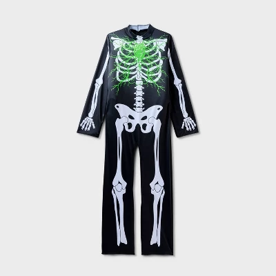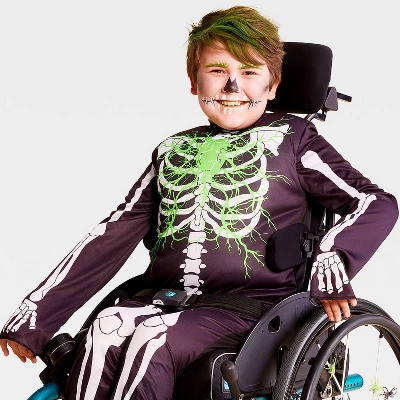 - Light-up skeleton jumpsuit costume with adaptive features