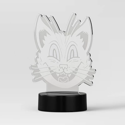 Add a classic Halloween accent to your home with this Lit Acrylic Cat Figurine from Hyde and EEK! Boutique™. This decorative prop features a neon purple cat face set on a round base. The figurine lights up with the included batteries, allowing you to add a soft glow to any Halloween display.