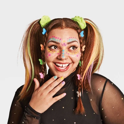 Enhance your Halloween ensemble effortlessly using this Mini Just Add Water Halloween UV Neon Makeup Kit from Hyde and EEK! Boutique™. This UV neon-palette makeup kit comes with a brush and four pots of water-activated colors in pink, yellow, blue and purple. Whether you’re transforming into a beautiful butterfly or a mesmerizing mermaid, this set has you covered in style.