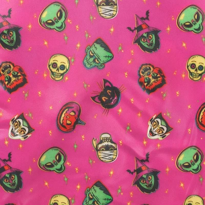 Carry your groceries, books, treats or just about anything Halloween in this Multi Characters Reusable Tote from Hyde and EEK! Boutique™. This rectangular tote bag has a large main compartment, providing ample space to carry your essentials. Made of polyester, this reusable bag features multiple Halloween-themed character prints like a jack-o’-lantern, an alien, skulls, and many more on a pink backdrop for a festive touch.