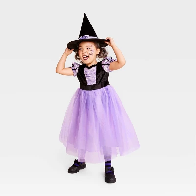 For an exciting Halloween, dress up your little one in the Toddler Fancy Witch Halloween Costume Dress with Hat from Hyde and EEK! Boutique™. Made from lightweight material for comfy wear, this costume includes a black-and-lavender dress featuring a black bodice with a long lavender tutu skirt and a classic pointy witch’s hat. Help them complete their witchy look by pairing this dress and hat with face glitter and black shoes.