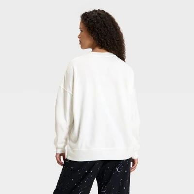 Snuggle up with festive vibes in the Women’s Halloween Skeleton Black Cat Fleece Pajama Sweatshirt from Hyde and EEK! Boutique™. Featuring a playful Halloween-themed graphic, this cozy pullover brings a fun, festive twist to your sleepwear or loungewear lineup. Crafted from soft knit fleece, it offers a warm, midweight feel that’s perfect for chilly fall nights. The regular fit, long sleeves and crewneck design make it a comfy classic, while the at-waist length pairs perfectly with pajama pants or your favorite joggers. Whether you’re relaxing at home or hosting a Halloween movie night, this sweatshirt is all treats, no tricks.